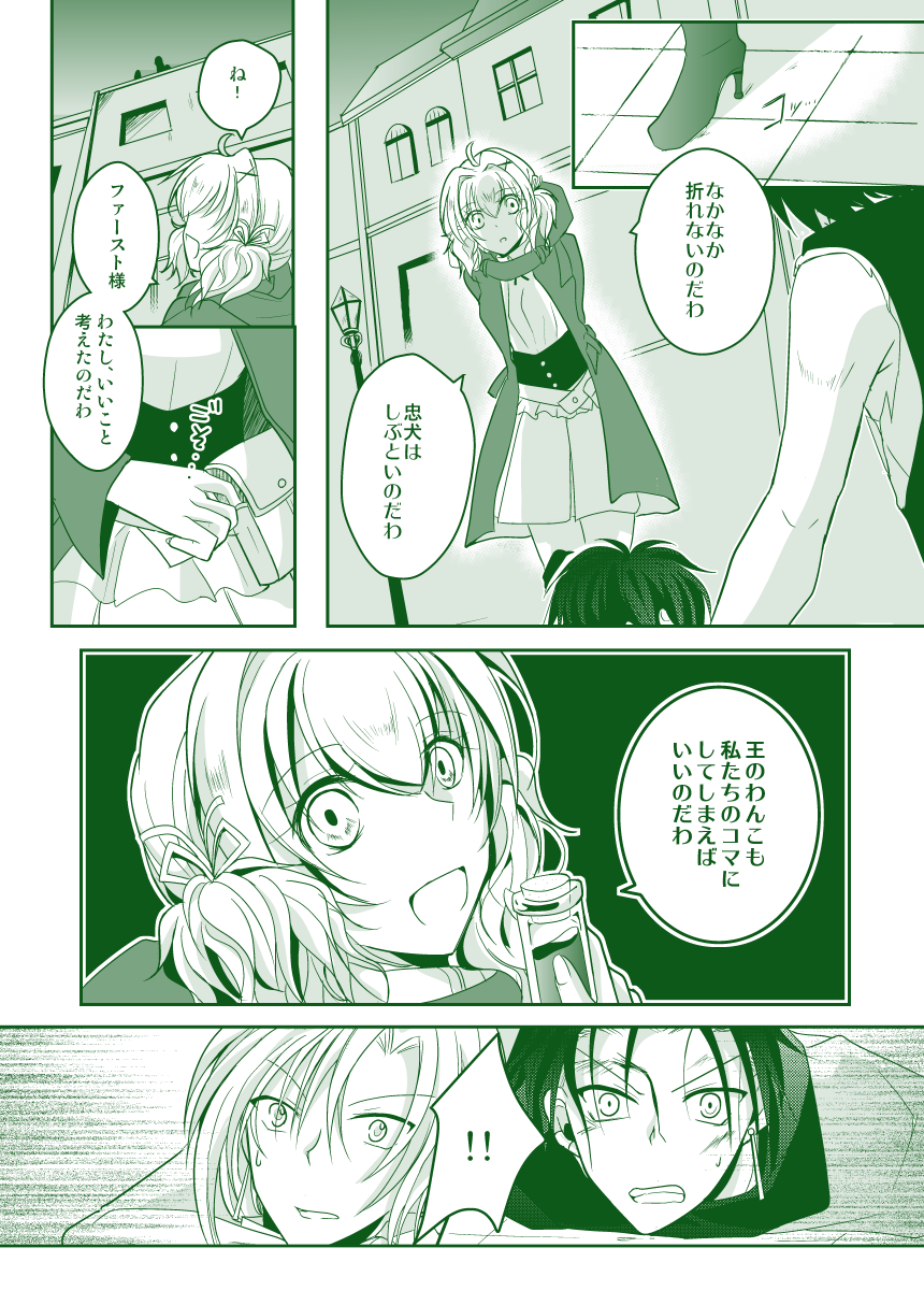 ので、ここのフィナは地味にちゃんと屋内の階段を下りてきているのでした。(一応、数ページ前からフィナはビルたちのそばから消えてるんですよね)このあとビルバートとネイヤは屋根の上から逃走するわけですが、屋根を(跳ばずに)走るくらいだったらただの人間でもなんとかなるだろうと妥協してます。